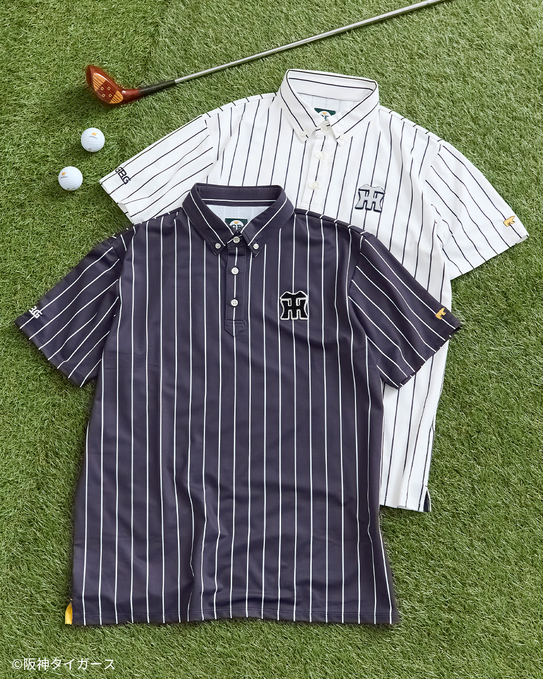 GB GOLFが大切にする「トラッド」と、球団90周年を迎えた阪神タイガースの伝統を表現したシックなネイビー、ホームユニフォームとビジターユニフォームを踏襲した縦縞とグレー、いずれのアイテムもモノトーンカラーで統一しました。