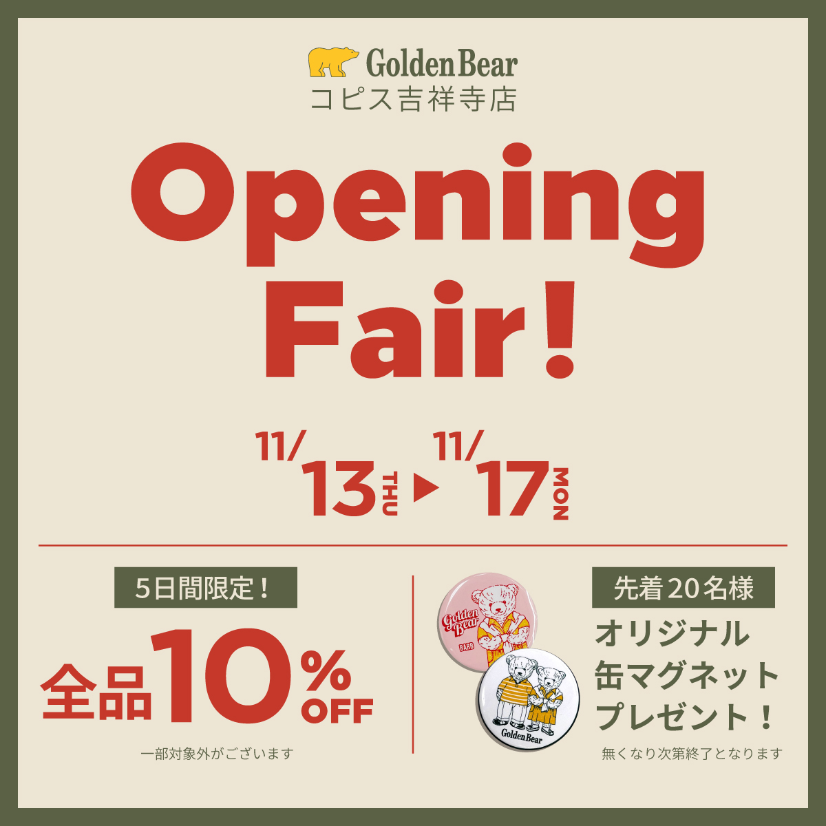 Golden Bear コピス吉祥寺店 リニューアルオープン!